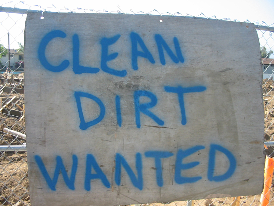 I think the term “clean dirt” refers to fill or loom that is of mostly uniform size granules. It has been sifted of all odd shaped rocks and trash.