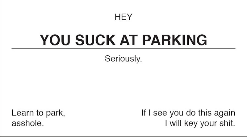 As opposed to the assholes who do things, like, say, park straddling the line between two spaces ( Trying to preserve their precious paintjob from the minor risk of a door of another car hitting it )? The only way to respond to such an asshole is to be an asshole to him.