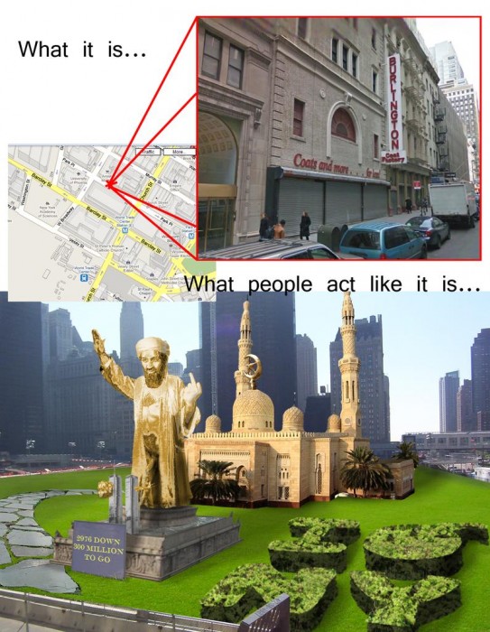 1: It’s not my mosque and I’m not sticking anything anywhere. More importantly, what are you talking about when you type “you couldn’t stick your supposed nothing mosque where you want” ? It’s being built! What permits have been denied? I haven’t read anything about that. Would you happen to have a source? Because if I’m wrong I definitely would like to know it.