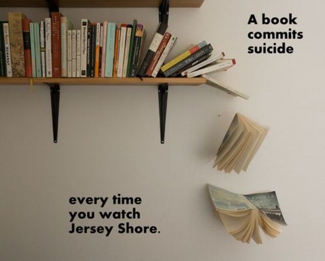Jersey Shore is funny because stupid people are funny and its fun to watch them do stupid things and fight over the most moronic shit. Say what you want but every time you laugh at someone being dumb in any TV show/movie/comic/etc you’re enjoying the kind of humor that comes from Jersey Shore.