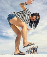 Giantess Attempting to Squish A Group Of Men At The Beach