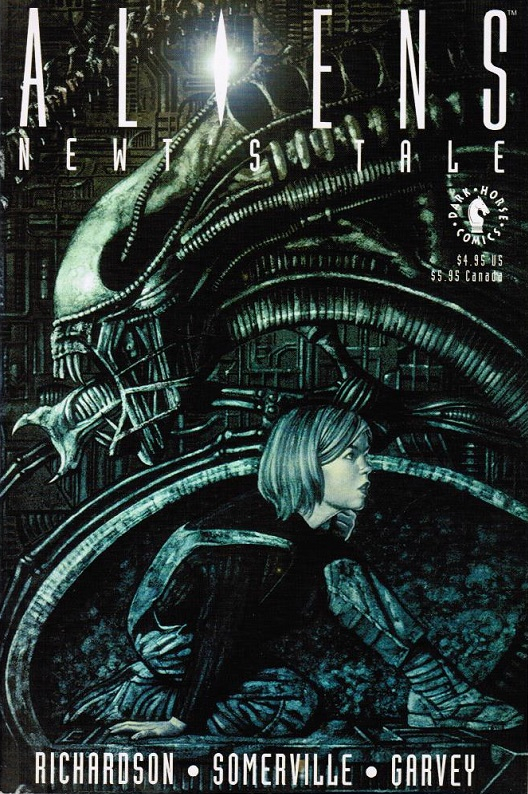 Aliens: Newt’s Tale is a two-issue comic book based on the film Aliens that was first published by Dark Horse Comics from June-July 1992. It was written by Mike Richardson, based on the original screenplay by James Cameron, and was pencilled by Jim Somerville, inked by Brian Garvey, colored by Gregory Wright, lettered by Pat Brosseau, and edited by Randy Stradley, with cover art by John Bolton. While ostensibly an adaptation of the movie, it is presented entirely from the perspective of Newt…