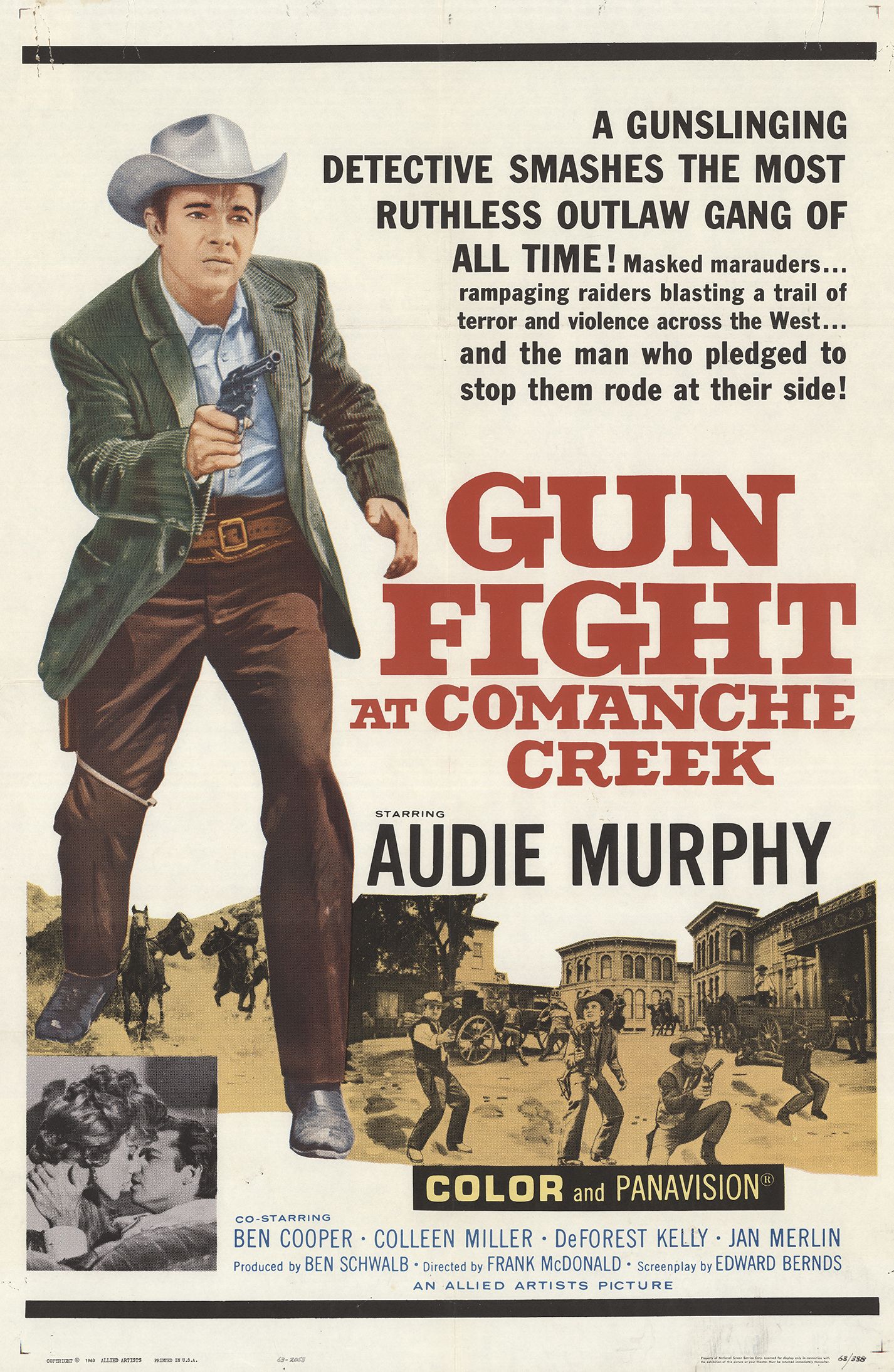 Watched because the movie was mentioned in a Star Trek book I’m reading, when they mentioned that De Forest Kelly was unlikely to be taken seriously as a kind doctor, as he had just played a horrible, no good outlaw in “Gunfight at Comanche Creek”. The movie’s pretty good, though there’s less De in the movie than I was expecting from the big deal they made about his role in the book.