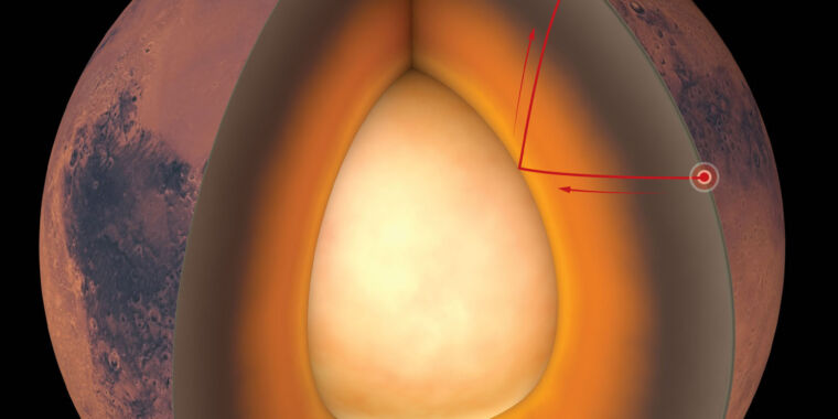 Red planet has a big core complex crust