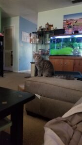This is Odo. His tail is rediculous, but he’s my leg cuddle buddy. Meaning that he only cuddles with my right leg, won’t get on my lap, and hates being picked up. Other than that, he enjoys screaming at me through the door at 8:45 every morning right when he hears my alarm go off. He’s a selfish little brat and I love him to death.