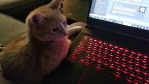 This his brother, Miles, in one of the few times that he’s cuddled up next to me, but I bet you can guess which side of my laptop the heat exhaust is on? He’s an extremely talkative cat and I love him to pieces as well.