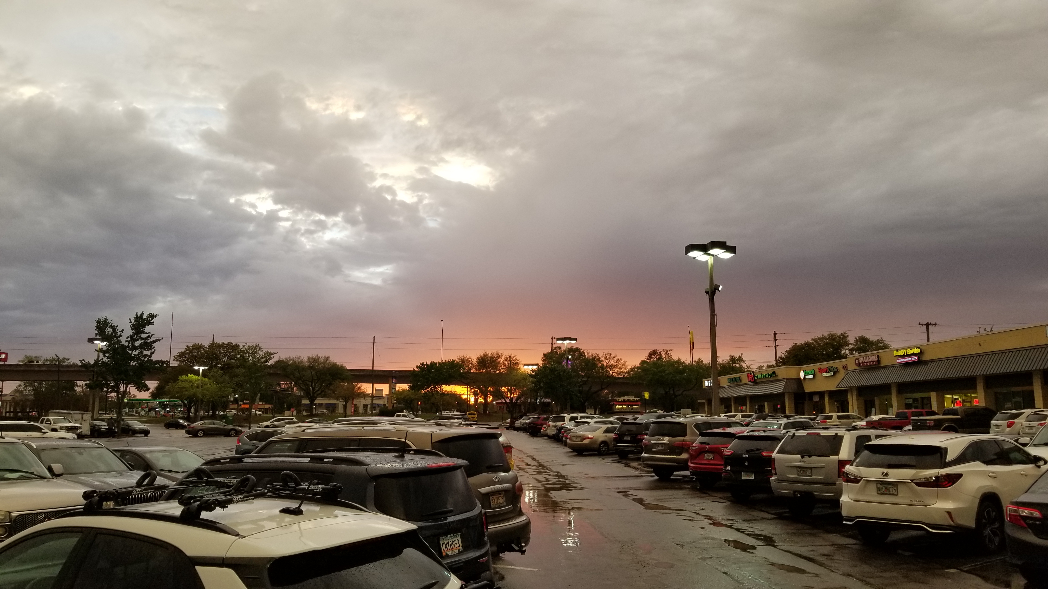 We had to go out for some cat food for baby cat, turns out she has a hyperthyroid situation and now we have to push a pill down her throat and give her some super high calorie food so she’ll put some weight back on. After we bought the cat food we went to a Japanese restaurant and had dinner inside the building for only the second time in over 2 years. it was a good dinner, and this was the sunset we saw on the way in.