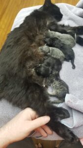 I regret to inform you that two of the kittens have died, one of the all black ones, and the tabby one. I spent the better part of a week getting up every 3 hours to feed the tabby one, but she ultimately didn’t have the strength to eat enough to survive.