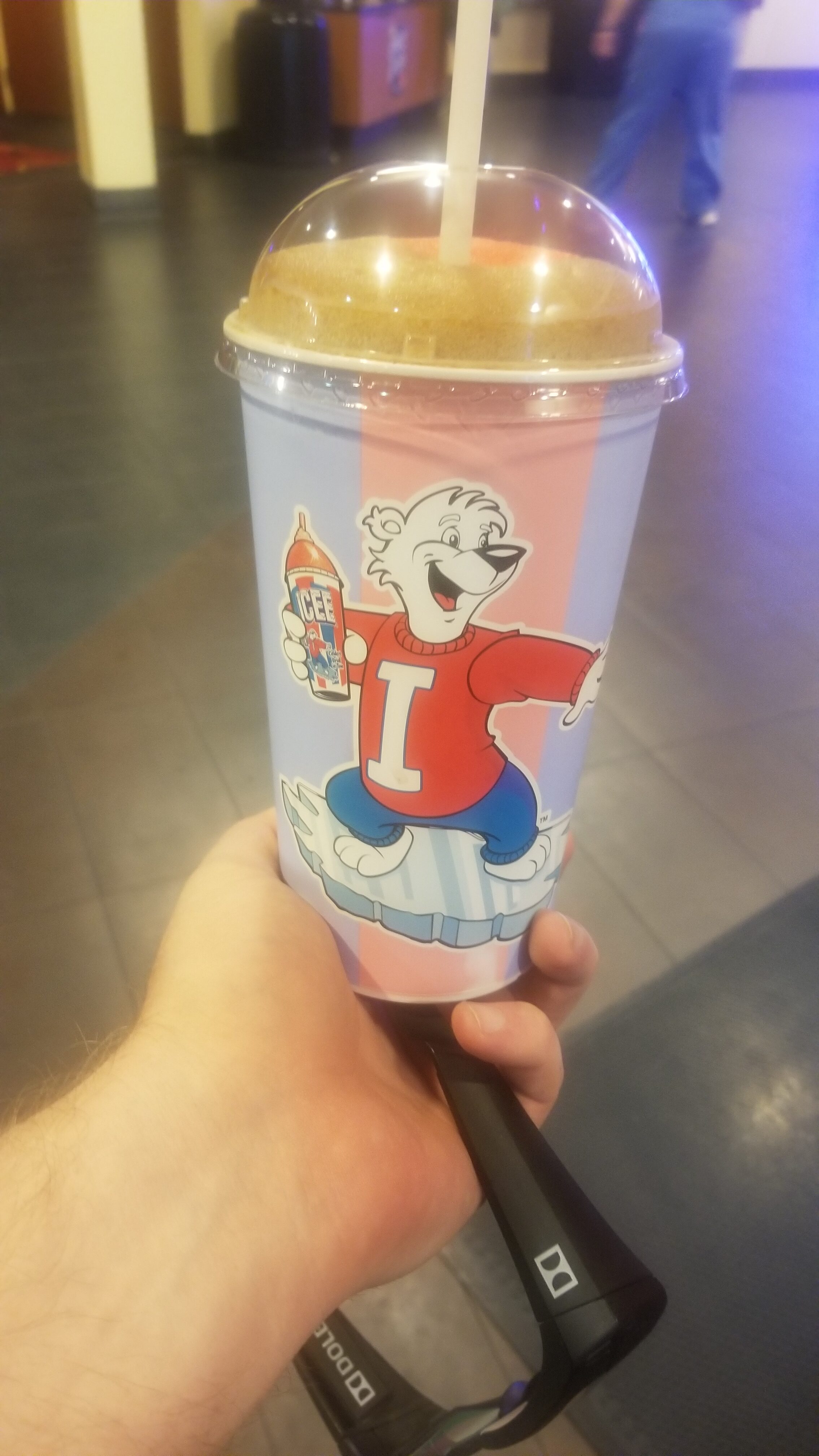 I bought a icee that cost $8, then I paid another $3 for it to come in a color changing cup. This was obviously at a movie theater, we went to see the original Avatar Film, which was just fine.