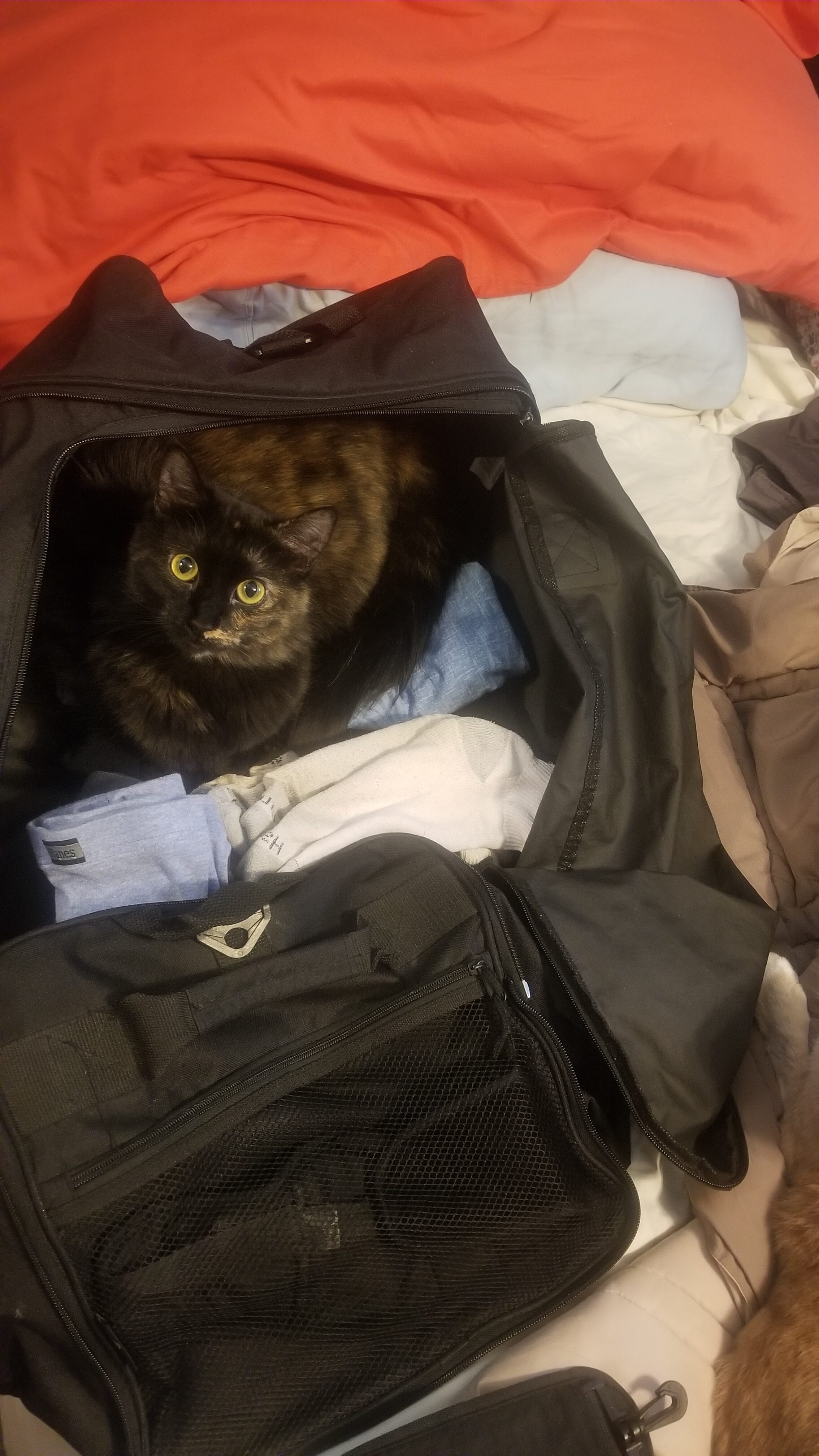 Bellabug helped me back for my trip, she was unhappy that I had to remove her from the bag, but that’s the sad situation, no cats allowed at the convention!
